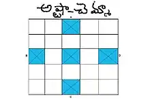 The game is controlled by throwing four cowry shells and counting how many are 'as it is' versus those that land 'inverted': if all four shells land inverted it is called "ashta" and if all land as it is then it is called an "chamma".