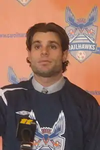 In 2000, Carrieri played two games, scoring three goals, with the New Brunswick Brigade in the Premier Development League.[1] Following his junior season, Carrieri signed a Project-40 contract with MLS. He was drafted first overall in the 2001 MLS SuperDraft by the San Jose Earthquakes, and immediately vowed to lead the team to a championship. Although the Earthquakes won the MLS Cup that year, Carrieri was not there to see it - shortly into the season he was traded to the Colorado Rapids for Junior Agogo. Carrieri had a relatively impressive rookie campaign with the Rapids, registering 5 goals and 4 assists in only 14 games with the team. In his second year with the team, Carrieri established his reputation as a quality American forward in scoring 11 goals and 5 assists for the Rapids, including a remarkable 2nd half hat trick on July 4 (the second in club history) in front of 61,213 fans at Invesco Field at Mile High. In his third year, Carrieri's production slowed, partially because of a contested (and temporary) move to right midfield, and he finished the year with 3 goals and 8 assists. Following the season, Carrieri was not re-signed by the Rapids, apparently partially because of conflicts with the coach Tim Hankinson, and partially because of salary cap concerns.