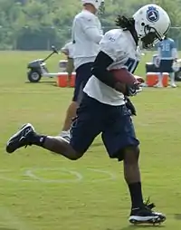 Johnson had his professional debut with the Titans on September 7, 2008, where he played in the season opener against the Jacksonville Jaguars, which the Titans won 17–10. Johnson rushed for 93 yards on 15 carries and had three receptions for 34 yards and a touchdown.[52] In only his second career game, Johnson ran for 109 yards on 19 carries, including a 51-yard run, and two receptions for 12 yards against the Cincinnati Bengals.[53]