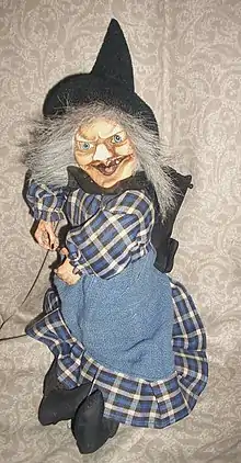 A typical figure of Italian Christmas folklore is the Befana, depicted as an old witch on a broom, who appears as a bearer of gifts on January 6, the day of the Epiphany: according to tradition, this figure brings gifts (usually sweets inside of a sock) to good children and coal to bad children.[16]