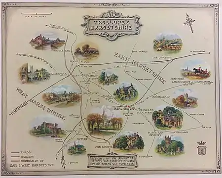 The Chronicles of Barsetshire is a series of six novels by English author Anthony Trollope, published between 1855 and 1867. They are set in the fictional English county of Barsetshire and its cathedral town of Barchester.[1] The novels concern the dealings of the clergy and the gentry, and the political, amatory, and social manoeuvrings among them.[2]