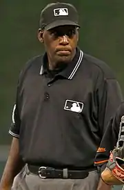 Julius Edward "Chuck" Meriwether (June 30, 1956 – October 26, 2019)[1][2] was a Major League Baseball (MLB) umpire. After working in the American League (AL) from 1988 to 1999, he umpired in both leagues from 2000 to 2009. Meriwether originally wore number 32, but in 2004 switched to number 14.