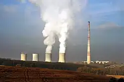 Chvaletice Power Station is a large lignite-fired power station at Chvaletice in the Czech Republic, owned by Pavel Tykač. Its installed power output is 4x 200 MW. Blocks 3 and 4 use a chimney which is 305 metres tall, built in 1977. It is the tallest free-standing structure in the Czech Republic.[1]