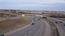 Circle Drive is a major road constructed as a ring road in Saskatoon, Saskatchewan, Canada. Its route constitutes both part of the Yellowhead Highway and Highway 11, signed as both along the entire length. It was first conceived in 1913 by the city commissioner and completed exactly 100 years later in 2013.[1] Most of the route is a fully-controlled access freeway, however the segment between Airport Drive and Millar Avenue has at-grade intersections.