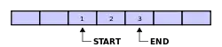 The start and end indexes are not enough to tell buffer full or empty state while also utilizing all buffer slots,[4] but can if the buffer only has a maximum in-use size of Length - 1.[5] In this case, the buffer is empty if the start and end indexes are equal and full when the in-use size is Length - 1. Another solution is to have another integer count that is incremented at a write operation and decremented at a read operation. Then checking for emptiness means testing count equals 0 and checking for fullness means testing count equals Length.[6]