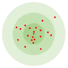 In the military science of ballistics, circular error probable (CEP)[1] (also circular error probability[2] or circle of equal probability[3]) is a measure of a weapon system's precision. It is defined as the radius of a circle, centered on the mean, whose perimeter is expected to include the landing points of 50% of the rounds; said otherwise, it is the median error radius.[4][5] That is, if a given munitions design has a CEP of 100 m, when 100 munitions are targeted at the same point, 50 will fall within a circle with a radius of 100 m around their average impact point. (The distance between the target point and the average impact point is referred to as bias.)