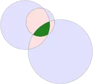 A circular horn triangle has all internal angles equal to zero.[1] One way of forming some of these triangles is to place three circles, externally tangent to each other in pairs; then the central triangular region surrounded by these circles is a horn triangle. However, other horn triangles, such as the arbelos (with three collinear vertices and three semicircles as its sides) are interior to one of the three tangent circles that form it, rather than exterior to all three.[2]
