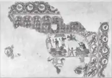 A brief description of the Circus of Carthage exists based on a mosaic found in Bardo National Museum in Tunis: "It is the only mosaic to show both the interior of the arena and the exterior façade, which has two arcades separated by a cornice. There also is an awning over the seats, which continue over the carceres, conveying more the appearance of an amphitheatre than a circus. The two temple-like structures above the seating are novel, as well, and may be situated at the break and finish lines."[3][4]
