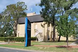 The municipality survived widespread local government amalgamations in 1994, gaining the Baranduda and Barnawartha North districts from neighbouring shires.[6] However, the councillors were dismissed on 18 November 1994,[7] and replaced by commissioners Mel Read, a long-serving executive of the Albury-Wodonga Development Corporation, Des Kelly, a Shire of Tallangatta councillor from 1968 until 1994, and Mike Hansen, a retired army officer with management and logistics experience.[8] The commissioners decided in 1995 that, to give the city a fresh image, the term "rural" be dropped from use except when legally required.[5] It has since been officially renamed to the City of Wodonga. The elected council was reinstituted in 1997.