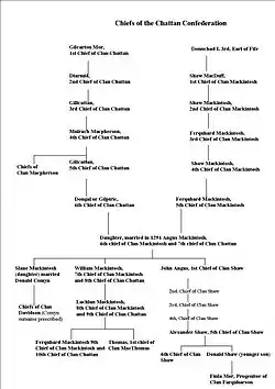 Prior to the 14th century, the Clan Chattan was a conventional Scottish clan.[3] However it evolved into an alliance or confederation of clans which was made up of