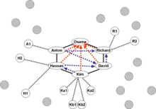 Assume there are no losses, and Osama can be reached directly only by members of the core group. Members of outer cells and support systems might know him only as "the Commander", or, as in the actual case of al-Qaeda, Osama bin Laden's face is recognizable worldwide, but only a few people knew where he was or even how to contact him.