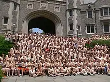 A class reunion is a meeting of former classmates, often organized at or near their former high school or college, by one or more class members. It is scheduled near an anniversary of their graduation, e.g. every 5 or 10 years. Their teachers and administrators may also be invited. Those attending reminisce about their student days and bring one another up to date on what has happened since they last met.