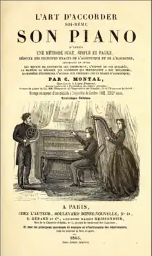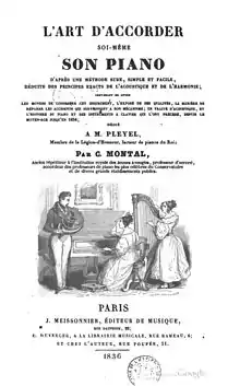 Montal's first book, published in 1834,[19] was twenty pages long, solely on the topic of piano tuning. It was intended to help individuals to learn to tune their own pianos, or at least to fill in when a professional tuner was not available. Its full title is very descriptive: "l'Art d'accorder soi-même son piano, d'après une méthode sure, simple et facile, déduite des principes exacts de l'acoustique et de l'harmonie" (The Art of Tuning Your Own Piano Yourself, by a Sure, Simple and Easy Method, Deduced from Precise Principles of Acoustics and Harmony).