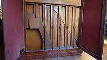 Montal's patented inventions included double escapement (repetition) action designs for both grands and upright; a grand piano with inverted soundboard (the soundboard above the strings); a transposition system whereby the piano keyboard could be shifted sharp or flat by several semitones; a system of adjustable iron bars (contre-tirage/counter-tension) to allow for adjustment of the case to match environmental condition; a soft pedal (pédale d’expression) that moved the hammers closer to the string and reduced key dip proportionally; and others.[3]