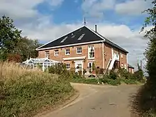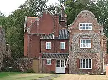 To the east of the village are the remains of Claxton Castle, which dates from the mid-14th century, licences to crenellate having been granted in 1340 and 1376.[3] Situated on private land in the grounds of Claxton Manor House it comprises a massive brick-and-flint wall 130 feet (40 m) long with six bastions. Claxton Manor House itself was built in the reign of Elizabeth I but has a Victorian façade. The Manor was bought in 1946 by Major Derek Allhusen, who achieved fame as a horseman winning team gold and individual silver at the 1968 Summer Olympics. Derek Allhusen died in 2000.[4]