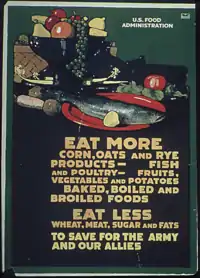 The Clean Plate Club was the beginning of a campaign first established in 1917 when the United States Congress passed the Food and Fuel Control Act or Lever Act. This gave the President the power to "regulate the distribution, export, import, purchase and storage of food."[1] President Woodrow Wilson released Executive order 2679-A [1] creating the U.S. Food Administration and appointed Herbert Hoover as the head, enforcing this act. This organization was given the task of making sure that the limited amount of food America had as a result of World War I didn’t go to waste, and to avoid importation of food as much as possible. Hoover knew that many Americans were willing to volunteer and had a strong sense of patriotism during the war, so he used that to his advantage when he advertised the idea of the “Clean Plate” campaign. Hoover promoted this idea to children who attended school with a pledge that read, “At table I’ll not leave a scrap of food upon my plate. And I’ll not eat between meals, but for supper time I’ll wait.” [2] This targeted children too young to understand the value of food in the difficult economic time. Many necessities such as flour and sugar were in short supply, so Hoover used a sense of American nationalism to encourage families to take appropriate rations and save food. His goal was for people to eat less, use less essential ingredients, and to finish their entire meal. By doing this, young children developed the habit of eating everything given to them, thus “cleaning their plate.”