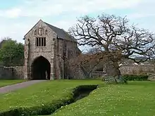The abbey was founded by William de Roumare, Earl of Lincoln.[2][3] On 25 June 1198 a colony of 12 monks led by Abbot Ralph arrived at the site from Revesby Abbey in Lincolnshire.[3] The official name of the abbey was Vallis Florida, (Latin: 'Flowering Valley') but throughout its history it was generally known as Cleeve after the nearby village.[4] The initial funding for the foundation was increased by land and money from the family of William de Mohun of Dunster, 1st Earl of Somerset and the Beckerolles family. In addition to various landholdings with produced rent for the abbey they held the Right of Wreck, which meant they could claim shipwrecks washed up on the shore of their lands.[4]