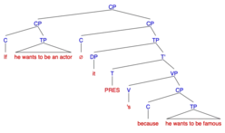 - English if-because cleft: If he wants to be an actor it's because he wants to be famous.[8]