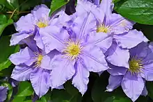 The wild Clematis species, such as Clematis florida, native to China had also made their way into Japanese gardens by the 17th century.[29] These species were also brought to Europe through Japan.[30]