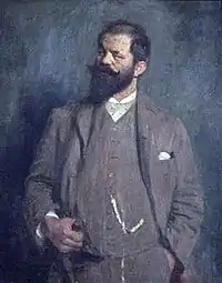 He was promoted to Professor in 1898, for his monumental statue of Kaiser Wilhelm I in Frankfurt am Main.[1] In 1902, he was forced to resign for health reasons, but continued to sculpt until his death. Due to his preference for bronze, and the fact that he had been largely forgotten, several of his works, including the statue of Wilhelm I, were melted down for war materiel during World War II.