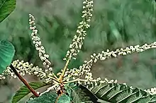 Clethra scabra is a shrub or tree growing in habitats from 950 to 2,500 m (3,120 to 8,200 ft) in altitude, native to the eastern Andes and adjacent montane woodlands and Chaco of Brazil, Bolivia, Paraguay, and northwest Argentina. It is able to reach 25 m (82 ft) in height, and is known to flower during March. It bears simple ovate to elongate and slightly obovate leaves 8 to 10 cm (3.1 to 3.9 in) in length and 4 to 6 cm (1.6 to 2.4 in) in width. These leaves tend to bear stellate hairs, and have prominent veins upon their abaxial face. The white flowers are small, borne upon a terminal spray of racemes.[2]