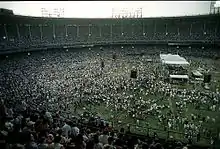 In addition to sporting events, the stadium hosted a number of other events including concerts. The first concert held at the stadium, featuring the Beatles, took place in 1966. From 1974 to 1980, the World Series of Rock concerts were held each summer featuring acts such as the Rolling Stones, Pink Floyd, the Beach Boys and Aerosmith. The Rolling Stones' July 1, 1978 concert of 82,238 attendees was reportedly the first concert to gross over $1 million.[31]
