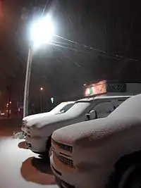 Winter days are cold but generally sunny with solar radiation generating some warmth. Daytime high temperatures usually range just below the freezing point. Several cold snaps usually occur each winter when temperatures can fall to between -15 °C (5 °F) and -25 °C (-13 °F). Similarly, there are usually one or two "January thaws" each year when considerable snow melt can occur. Major snowfalls can result from nor'easter ocean storms moving up the east coast of North America, following the jet stream from the southeastern United States.[2] Large amounts of precipitation can result from the counterclockwise rotation of these storms picking up moisture from the Atlantic Ocean and dumping it on southeastern New Brunswick as the storms pass by to the south and east of the region.[2] This can be amplified locally by "sea effect" snow squall activity due to northeasterly winds passing over the nearby Gulf of St. Lawrence on the trailing edge of the storm. In February 1992, a nor'Easter lasted for two days and dropped 162 cm (65 inches) of snow on the Moncton area. That record was not beaten until Winter of 2015. Major snowfalls more typically average 20–30 cm (8–12 in) and are frequently mixed with rain or freezing rain.