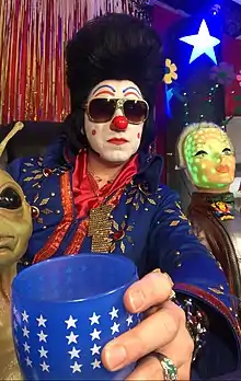 Leahy is the grandson of Earl Weaver.[1] Donning a customized and bedazzled jumpsuit, oversized pompadour wig, full face makeup, and a bulbous red nose, Leahy began performing as Clownvis Presley for parties and special events in 2006. Hiring himself out as “a Craigslist Clown”, many of Clownvis’ earliest gigs came from postings in the online classified ads. He moved to Hollywood in 2010. After gaining attention from television appearances, he performed frequently at comedy clubs in Los Angeles and hosted “Clownvis and Friends” at the Hollywood Improv monthly from 2011–2013. LA Weekly called his act "better than the real Elvis".[2]