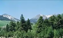 The highest elevations in the forest are located in the San Francisco Peaks area north of Flagstaff. Here grow large conifers such as Engelmann spruce, blue spruce, subalpine fir, corkbark fir (a variety of subalpine fir found only in isolated areas of Arizona and New Mexico), Douglas-fir, bristlecone pine, and limber pine. Isolated stands of quaking aspen, usually the first tree to regenerate following a severe wildfire, are scattered across the mountain.[7]
