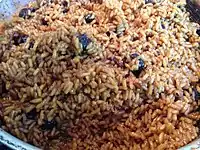Coconut rice is a dish prepared by cooking white rice in coconut milk or coconut flakes.[1] As both the coconut and the rice-plant are commonly found in the tropics all-around the world, coconut rice too is found in many cultures throughout the world, spanning across the equator from the Indian subcontinent, Southeast Asia, South America, Central America, West Africa, East Africa, the Caribbean and Oceania.