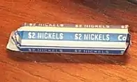 | Blue | Nickel | 5¢ | 40 | $2.00 | 200 | (in the past, sometimes found in 20 coin, $1.00, half-rolls) | |
