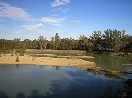 The Murray River flows through Colignan. This island, commonly known as Watts's or Colignan Island, is fully submerged when the river is high