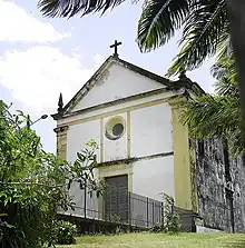 Since the 16th century, the Jesuits built churches and colleges in isolated regions to promote the conversion of the indigenous people to Christianity. Some important examples of Jesuit churches from the early days of colonization are those in São Pedro d'Aldeia (RJ), Nova Almeida (ES), Embu (SP), and the São Miguel Chapel in São Miguel Paulista (SP), all dating from the 17th or early 18th century.[9][18] In the metropolis of São Paulo, which arose around a Jesuit village, the 16th century facade of the former Jesuit church and college (known as Pátio do Colégio) was faithfully reconstructed based on ancient iconography. The facade shows the 16th century traces of the early floor style, including a triangular pediment. In contrast, in Rio de Janeiro, the important Jesuit church on Morro do Castelo, founded in 1567, was demolished in 1922 in the redevelopment of the area where it was located.[20] Similar to those in São Paulo and Rio were the Jesuit church and college in Santos,[19] demolished in the 19th century but well known from plans and drawings.
