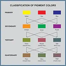 Because the perception of color is an important aspect of human life, different colors have been associated with emotions, activity, and nationality. Names of color regions in different cultures can have different, sometimes overlapping areas. In visual arts, color theory is used to govern the use of colors in an aesthetically pleasing and harmonious way. The theory of color includes the color complements; color balance; and classification of primary colors (traditionally red, yellow, blue), secondary colors (traditionally orange, green, purple) and tertiary colors. The study of colors in general is called color science.