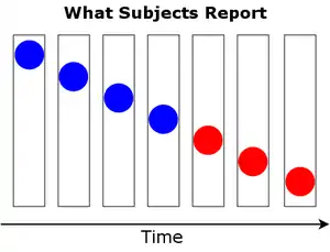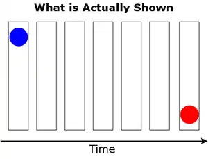 ![]() Subjects report seeing a dot that moves from the top to the bottom. The dot changes color midway through its path. |
