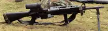 The Colt Model 750 was an improvement of the basic principle of the Colt LMG, developed jointly by Colt and Diemaco with an eye to Canadian Army sales. The improved version featured all A2 parts and is essentially the same as the preceding variant externally except for the redesigned vertical foregrip, now of a ribbed straight cylindrical style. This weapon was marketed by Diemaco as the C7 Light Support Weapon (LSW) or simply as the LSW.[5] The Netherlands Marine Corps designate it as "LOAW" (licht ondersteunend automatisch wapen/light supporting automatic weapon) and the Danish military as "LSV M/04". The LSWs used by the Netherlands Marine Corps and the Danish military like many M16 variants fire from a closed bolt and feature semi-automatic and fully automatic firing modes and a forward assist.[6] With its 5.42 kg (14.5 lbs) the C7 LSW is relatively light and as it uses 5.56×45mm NATO ammunition fed from STANAG magazines, like assault rifles and carbines that are fed in the same way, ammunition is easy to redistribute between riflemen if the operator runs out of ammunition. The lack of belt feed and quick barrel change options limits the C7 LSW and similar magazine fed light support weapon's rapid rates of fire.