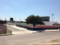 Comalander Stadium is an 11,000-seat, open style football and soccer stadium in San Antonio, Texas. Built as North East Stadium in 1962, it was renamed to Comalander Stadium in 2000, for long time district athletic director Jerry Comalander.[3] As a part of the Blossom Athletic Center, it is owned and operated by the North East Independent School District. Along with Heroes Stadium, the stadium is the home venue for the football, track and field, and band events for the high schools and middle schools in the district. Also, the Crossmen Drum and Bugle Corps host their spring training here annually in May and June. The playing surface was upgraded in 1998.[4]