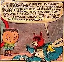 Combatron is a Filipino superhero. Created by Berlin H. Manalaysay, he first appeared in Funny Komiks in 1992.