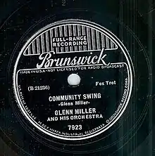 Community Swing is a swing jazz instrumental composed and recorded by Glenn Miller and released as a Brunswick 78 single in 1937 by Glenn Miller and His Orchestra.