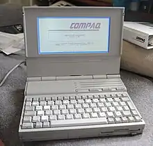 Compaq LTE was a line of laptop computers made by Compaq, introduced in 1989.[1][2] The first models, Compaq LTE and Compaq LTE 286, were among the first computers to be close to the size of a paper notebook, spurring the use of the term "notebook" to describe a smaller laptop, and earned a notable place in laptop history. They were also among the first to include both a built-in hard disk and a floppy disk drive, and later models offered optional docking stations, providing performance comparable to then-current desktop machines.[3]