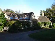 Artist and historian Mary Wondrausch lived and worked in the parish[7] at the site of a former brickworks. Made of local clay from the foundations of the pottery of Mary Wondrausch, sculptor Jon Edgar's Compton Triptych[8] was unveiled in November 2011. The three terracotta heads celebrate the parish of Compton and the diverse figures who have contributed to this community.