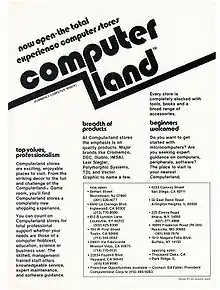 ComputerLand was a widespread chain of retail computer stores during the early years of the microcomputer revolution, and was one of the outlets (along with Computer City and Sears) chosen to introduce the IBM PC in 1981. The first ComputerLand opened in 1976, and the chain eventually included about 800 stores by 1985. After this time the rapid commoditization of the PC led to the company's downfall, with most of the retail locations closing by 1990. The company officially ended in February 1999.