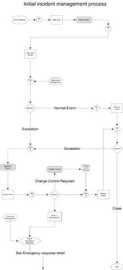 - Escalation – an escalated event affects critical production systems or requires that implementation of a resolution that must follow a change control process. Escalated events require the participation of senior personnel and stakeholder notification of the event.