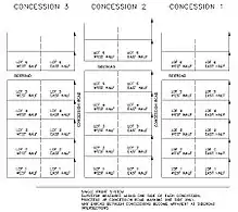 Other plans used during colonial surveying used different layouts and lot sizes of 100, 150, 160, 200 or 320 acres.[8]