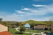The campus is located 50 miles (80 km) south of Los Angeles, 80 miles (130 km) north of San Diego, and 6 miles (9.7 km) inland from the Pacific Ocean in the city of Irvine. Irvine is a planned community which is rated one of the safest cities of its size in the United States.[12] The campus rests on a 70-acre (28 ha) plateau overlooking Orange County in a private residential community surrounded by wildlife and hiking trails.[13] The offices of the School of Professional Studies - Adult Degree Programs, M.A. International Studies, Nursing programs, and the Masters in Coaching and Athletic Administration (MCAA) teams moved to an offsite location in Irvine.[14]