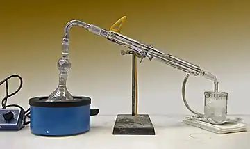 Condensers are routinely used in laboratory operations such as distillation, reflux, and extraction. In distillation, a mixture is heated until the more volatile components boil off, the vapors are condensed, and collected in a separate container. In reflux, a reaction involving volatile liquids is carried out at their boiling point, to speed it up; and the vapors that inevitably come off are condensed and returned to the reaction vessel. In Soxhlet extraction, a hot solvent is infused onto some powdered material, such as ground seeds, to leach out some poorly soluble component; the solvent is then automatically distilled out of the resulting solution, condensed, and infused again.