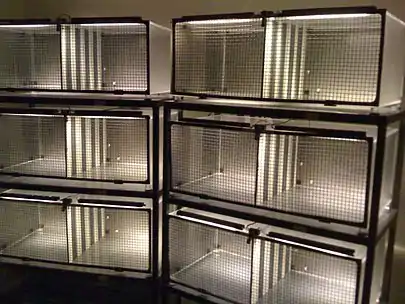 Conditioned place preference (CPP) is a form of Pavlovian conditioning used to measure the motivational effects of objects or experiences.[1] This motivation comes from the pleasurable aspect of the experience, so that the brain can be reminded of the context that surrounded the "encounter".[2] By measuring the amount of time an animal spends in an area that has been associated with a stimulus, researchers can infer the animal's liking for the stimulus.[3] This paradigm can also be used to measure conditioned place aversion with an identical procedure involving aversive stimuli instead. Both procedures usually involve mice or rats as subjects.[4][5] This procedure can be used to measure extinction and reinstatement of the conditioned stimulus. Certain drugs are used in this paradigm to measure their reinforcing properties. Two different methods are used to choose the compartments to be conditioned, and these are biased vs. unbiased. The biased method allows the animal to explore the apparatus, and the compartment they least prefer is the one that the drug is administered in and the one they most prefer is the one where the vehicle is injected.[6] This method allows the animal to choose the compartment they get the drug and vehicle in. In comparison, the unbiased method does not allow the animal to choose what compartment they get the drug and vehicle in and instead the researcher chooses the compartments.[6]