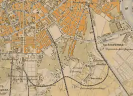 ![]() The Connecting Line at a 1870s map (horizontal curved, connecting vertical straight) | |
