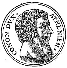 Conon (Greek: Κόνων) (before 443 BC – c. 389 BC)[1] was an Athenian general at the end of the Peloponnesian War, who led the Athenian naval forces when they were defeated by a Peloponnesian fleet in the crucial Battle of Aegospotami; later he contributed significantly to the restoration of Athens' political and military power.