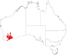 It is found in the Coolgardie, Avon Wheatbelt, Mallee and Esperance plains IBRA bioregion(s), in the South-west Botanical Province.[3]